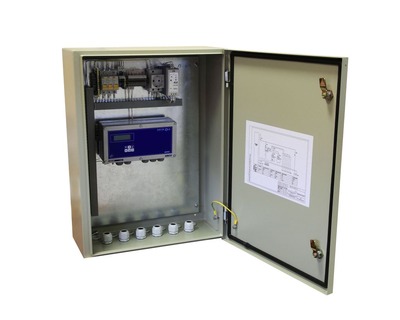 Шкаф питания и коммутации УУТЭ – предназначен для электропитания приборов узла учета тепловой энергии и теплоносителя, размещения вторичных преобразователей (измерительных блоков), средств связи и т. п., а также для защиты от внутренних и внешних коротких замыканий.